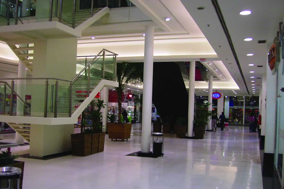 O retrofit do Shopping Curitiba, obra realizada com o local em funcionamento exigindo flexibilidade e organização para que o estabelecimento pudesse receber seus clientes. Além de acabamento primoroso que todo shopping exige.
