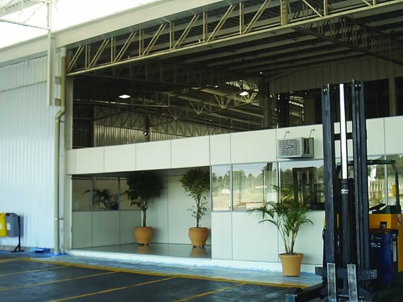 Obra industrial do setor automotivo, com execução de cobertura metálica, piso de concreto armado e escritórios.
