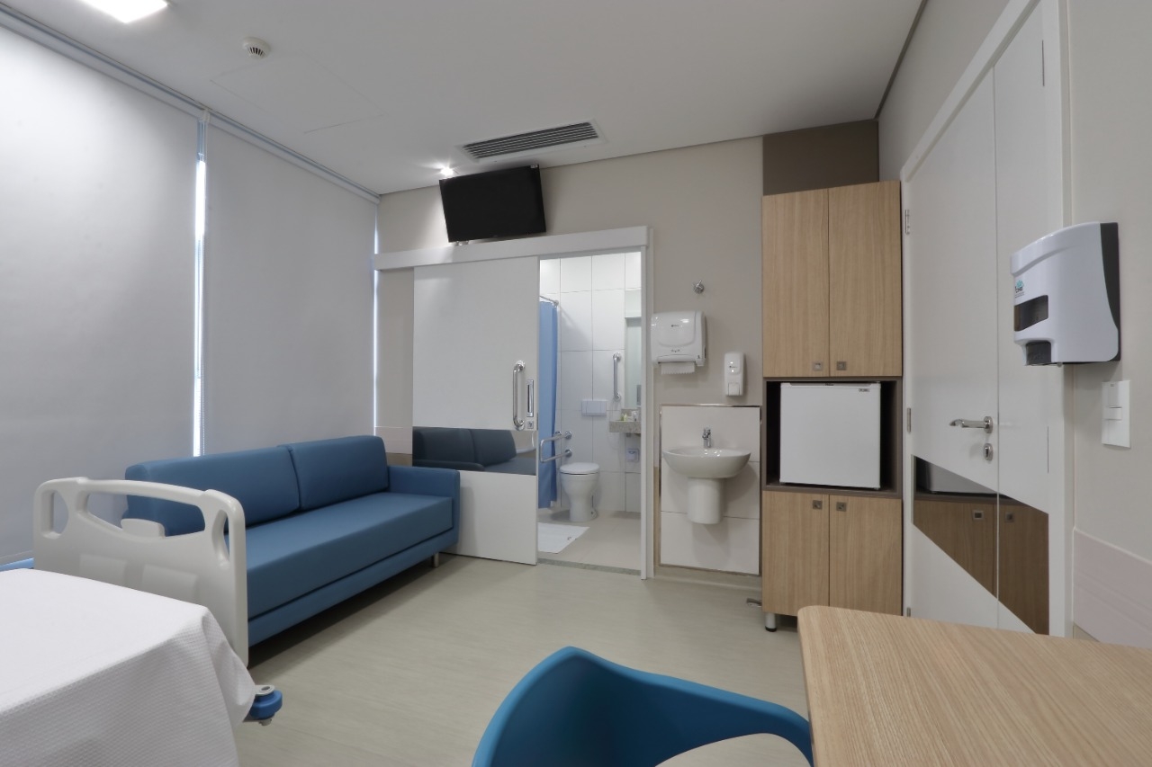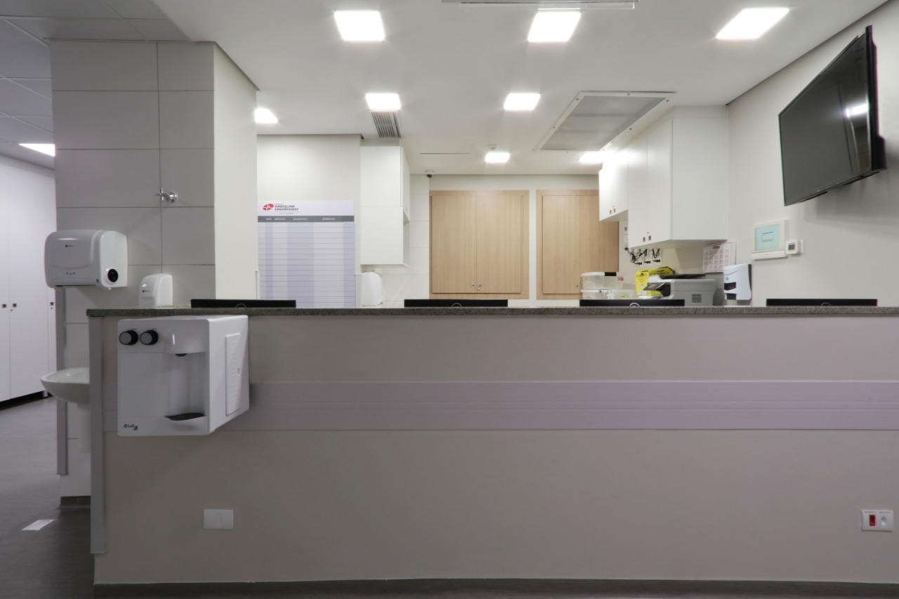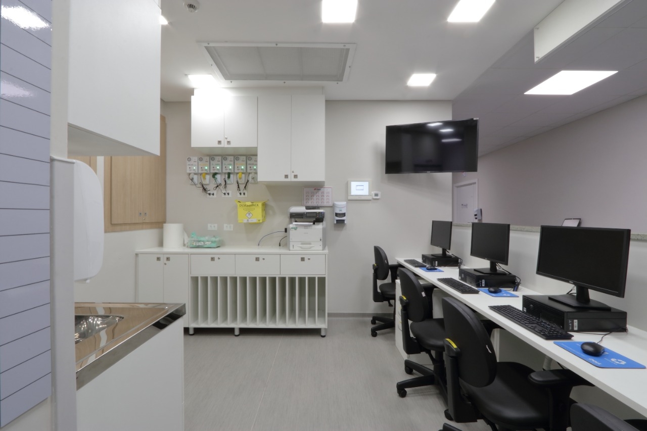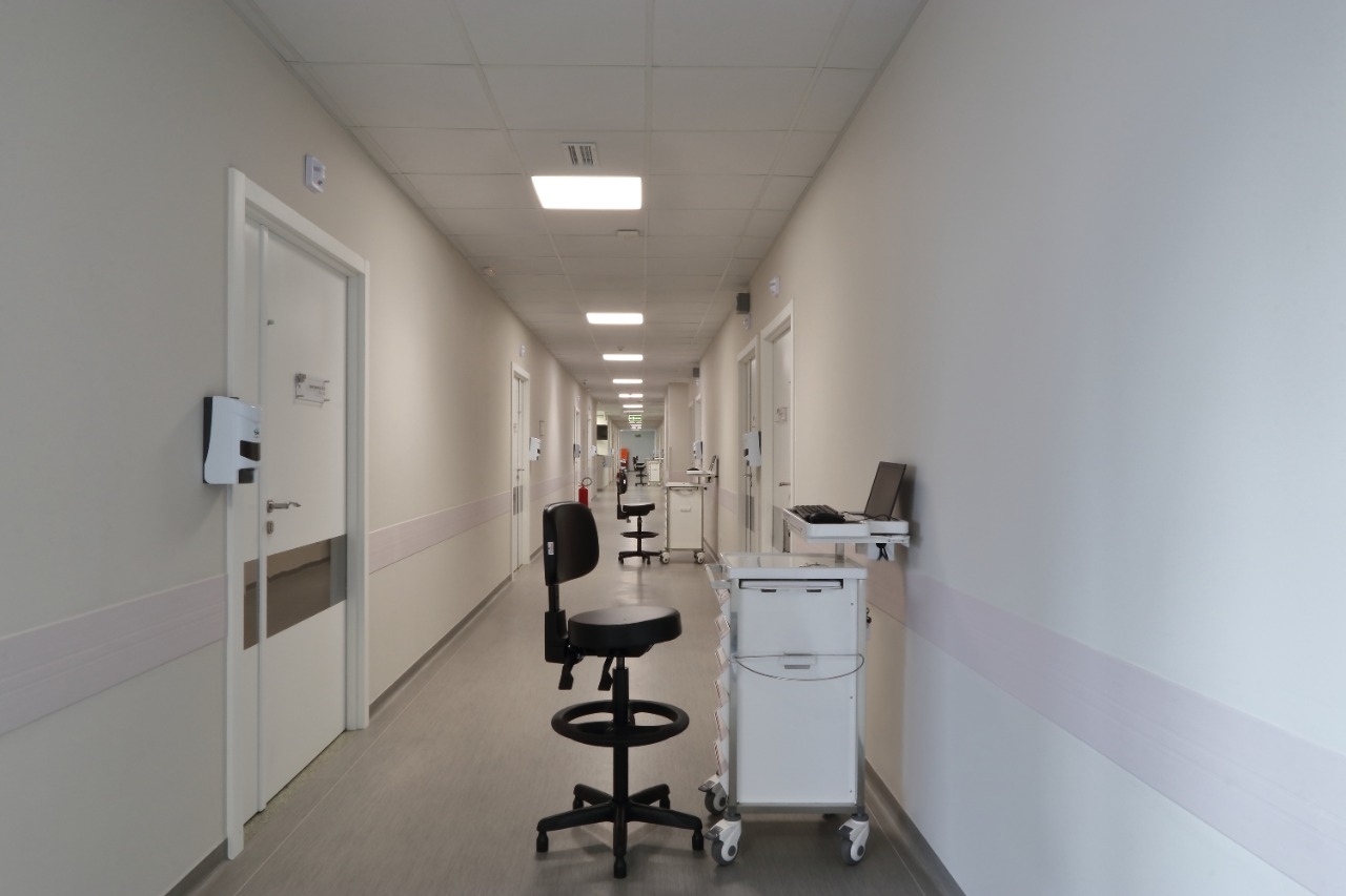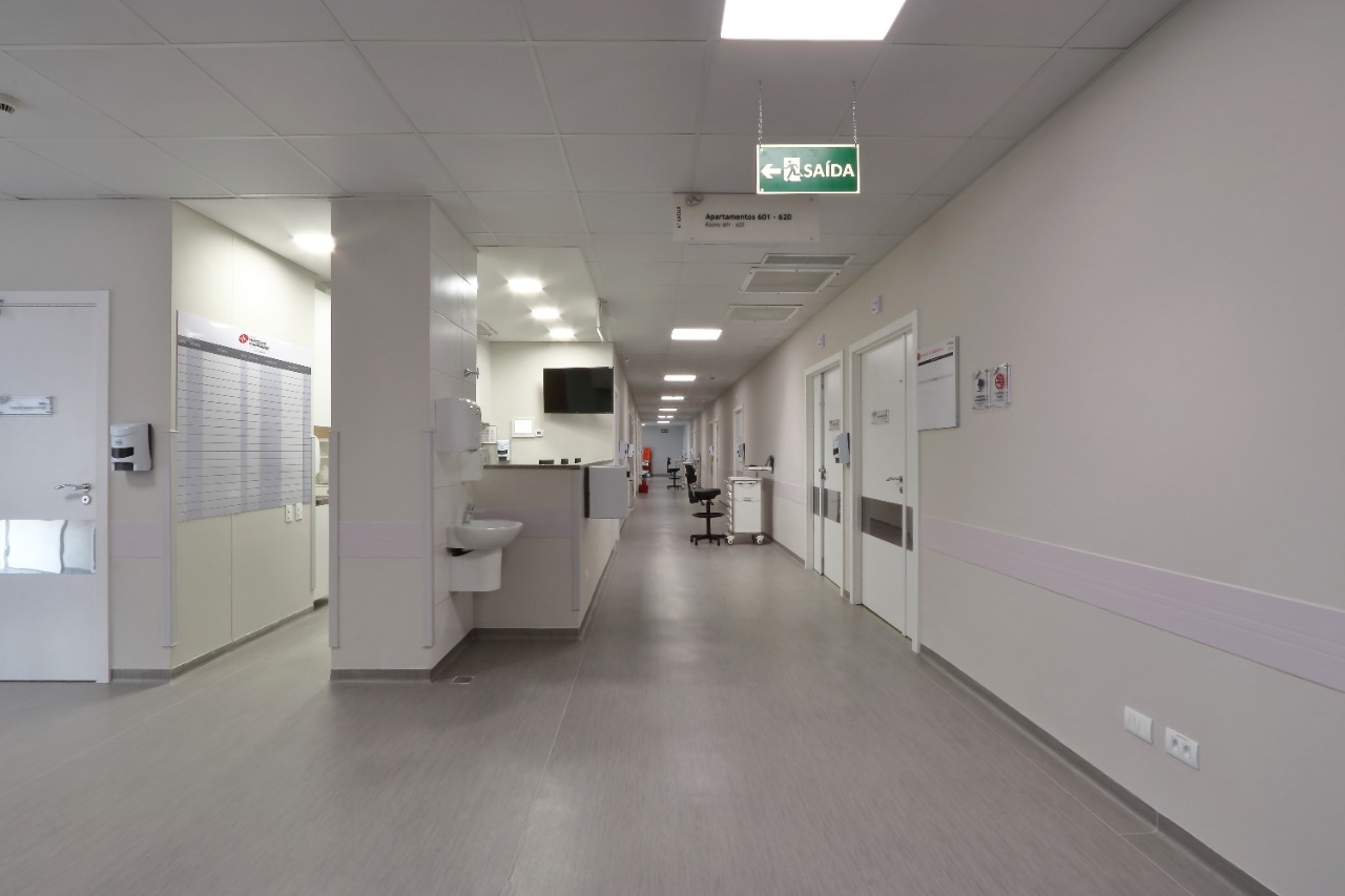 Obra de retrofit do Hospital Marcelino Champagnat, incluindo 40 leitos, corredores, salas de apoio hospitalar.