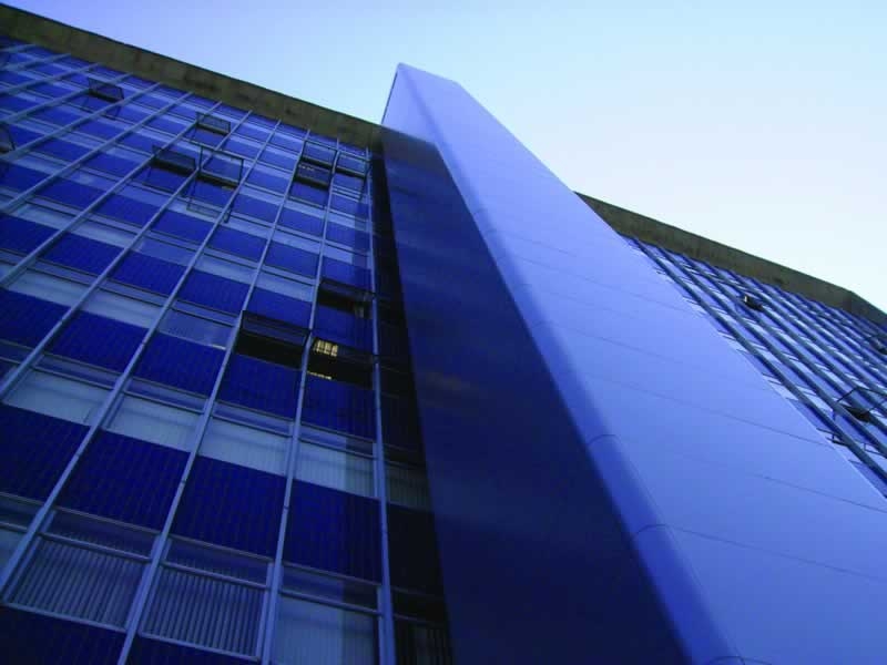 Retrofit do prédio administrativo com o prédio em operação, sendo necessário planejamento para coordenação da obra com mínimo de impacto. O diferencial desta obra foi a instalação de um elevador de grande altura pelo lado externo do prédio.