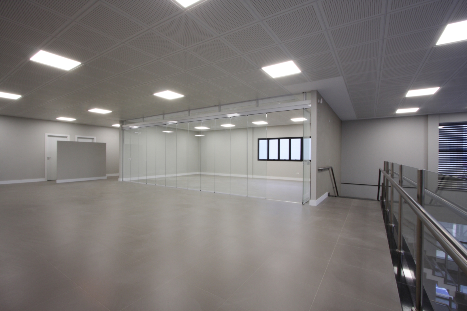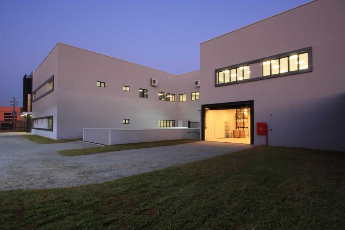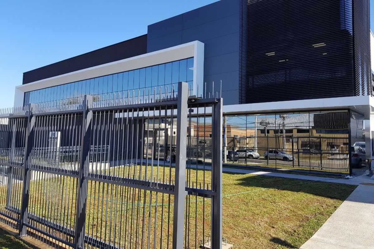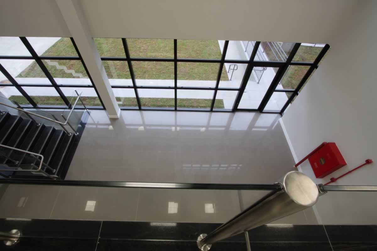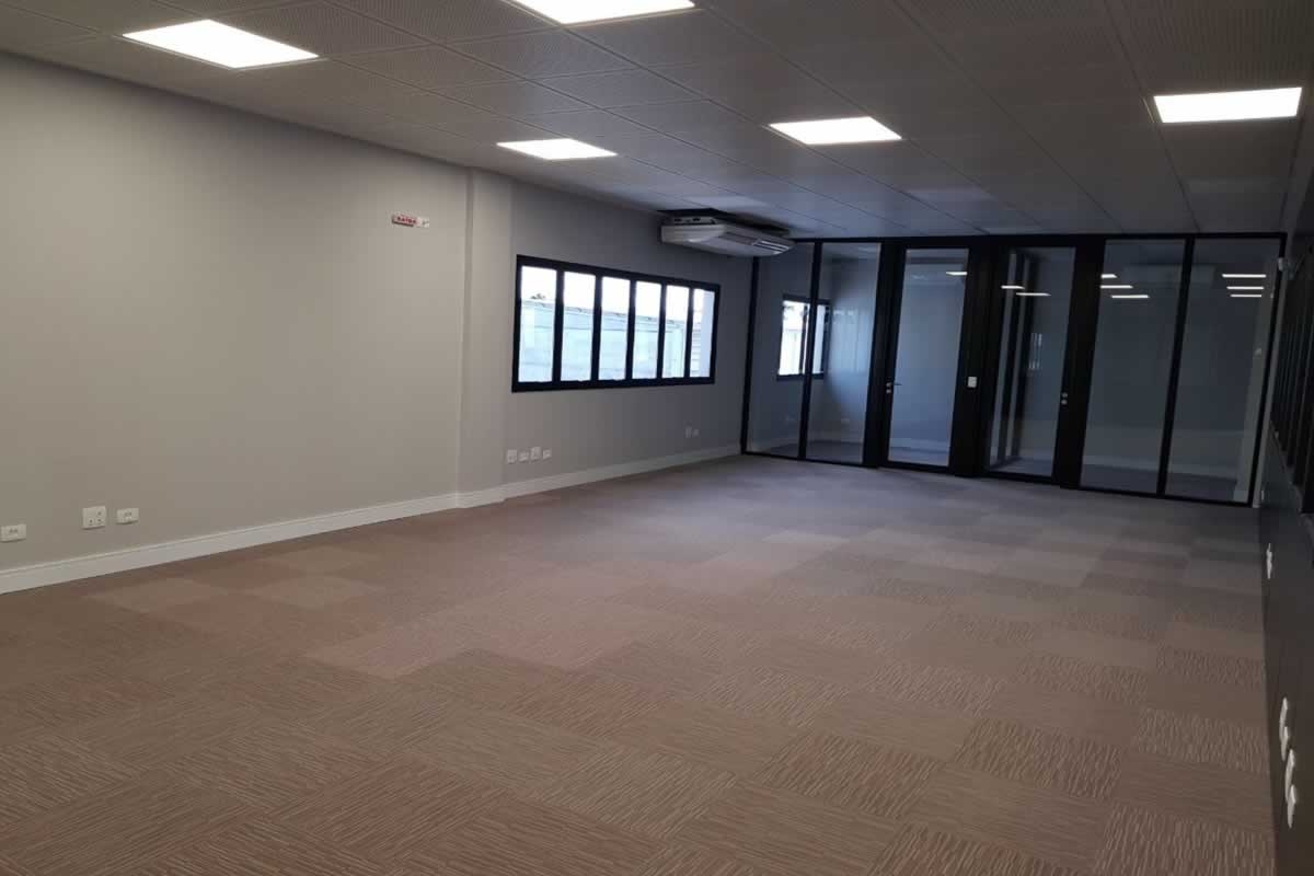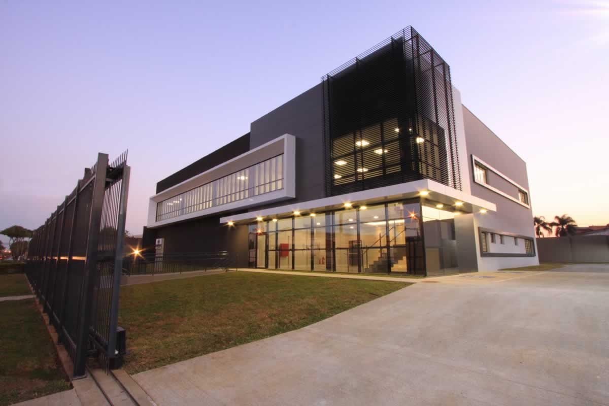 Escritório comercial executado em concreto armado, com acabamento moderno e adaptado a empresa de tecnologia.