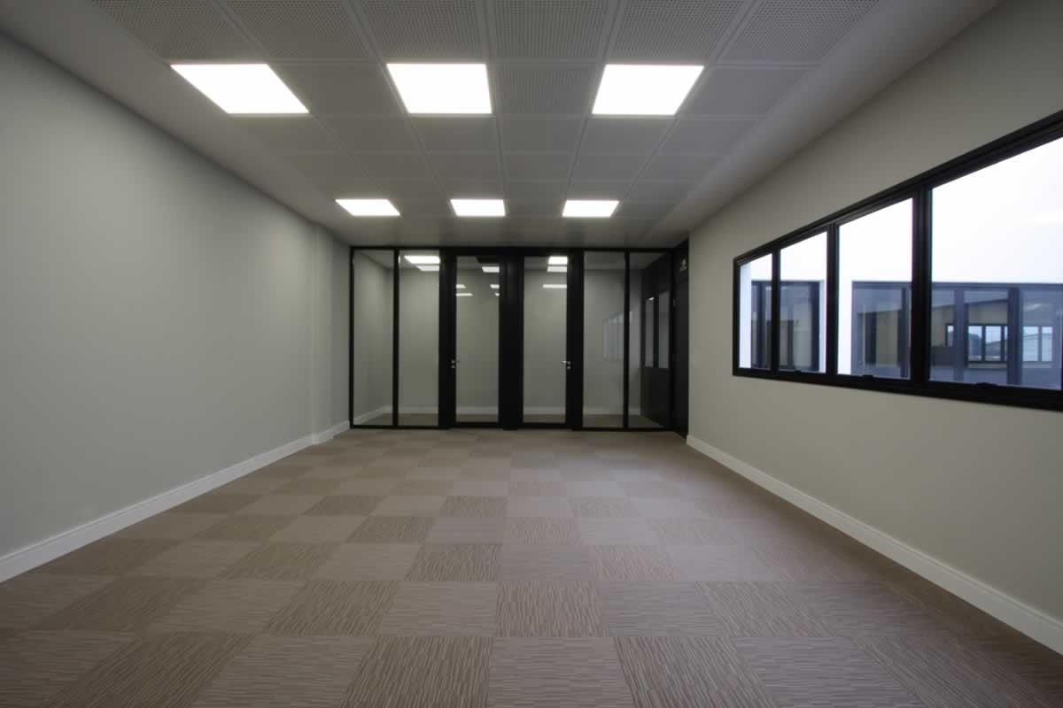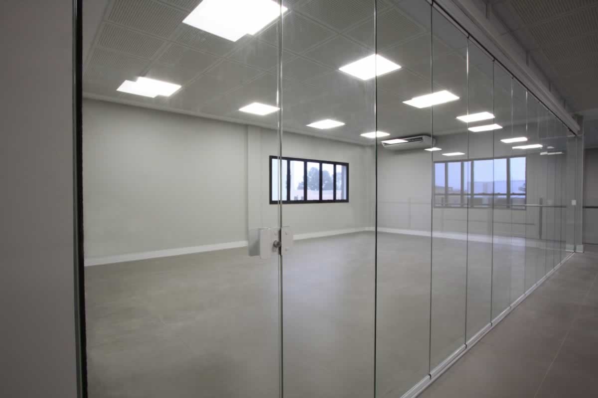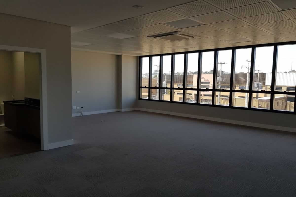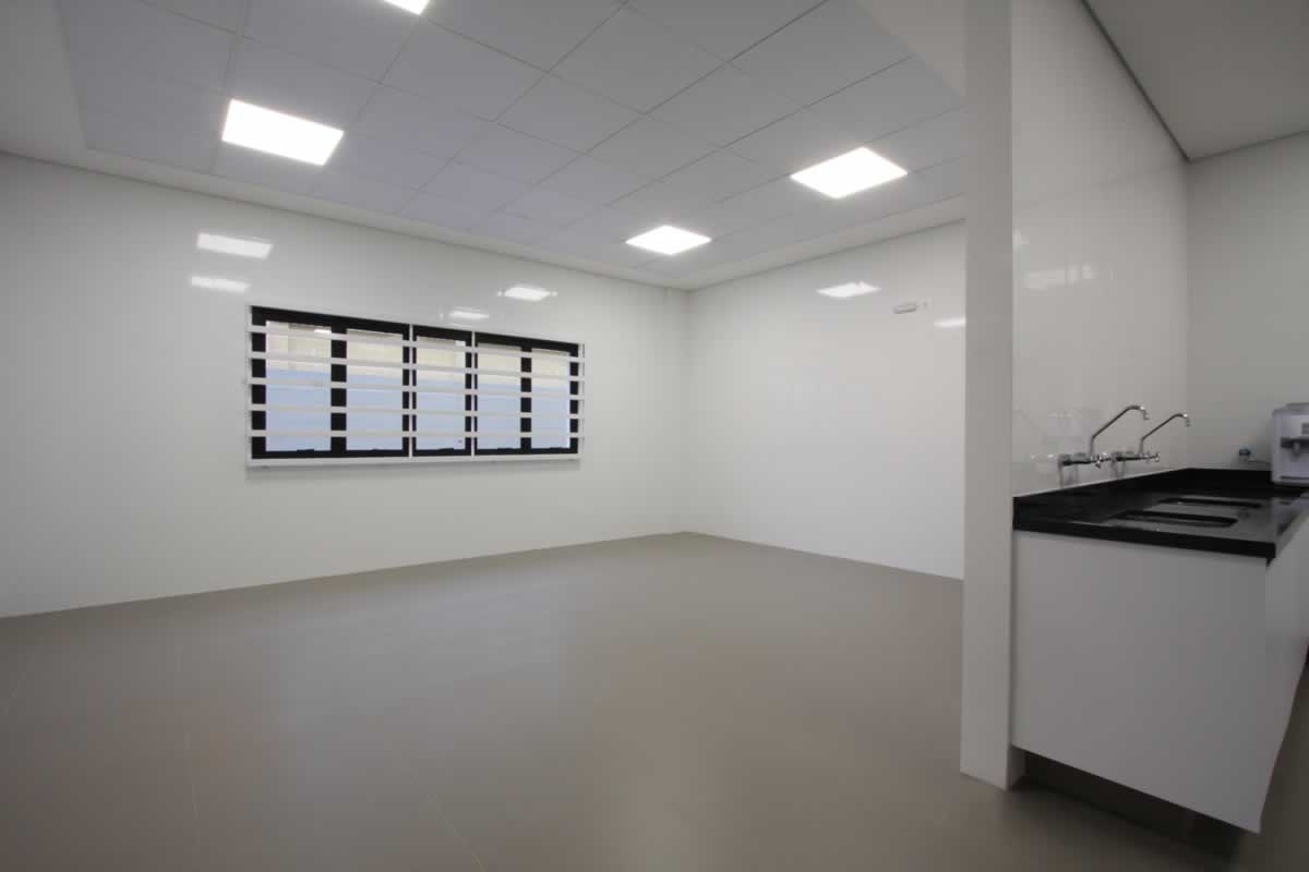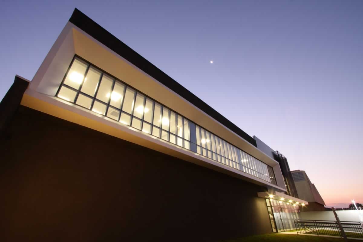 Escritório comercial executado em concreto armado, com acabamento moderno e adaptado a empresa de tecnologia.