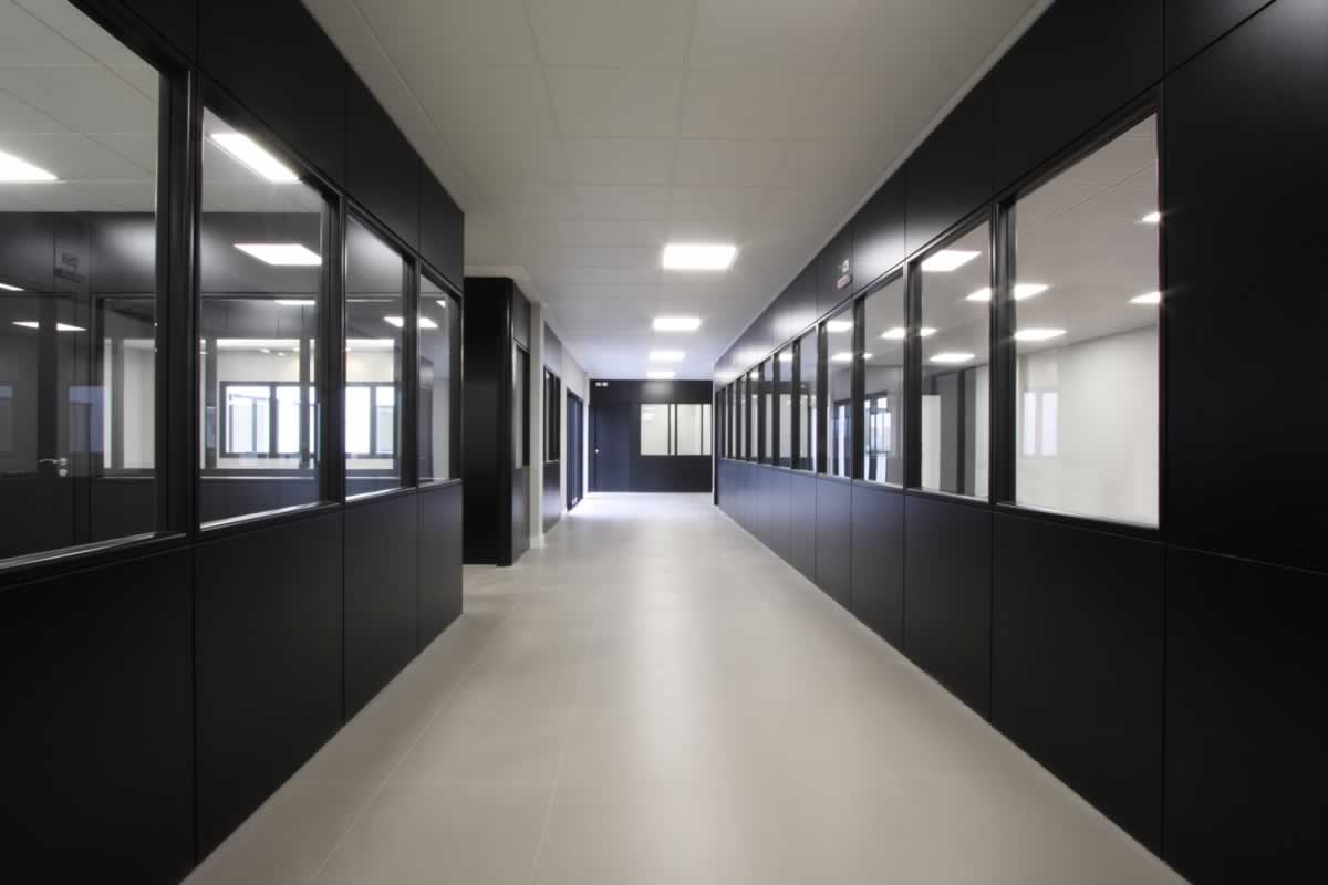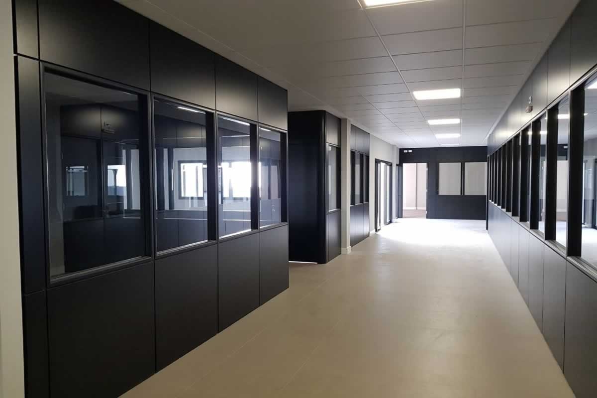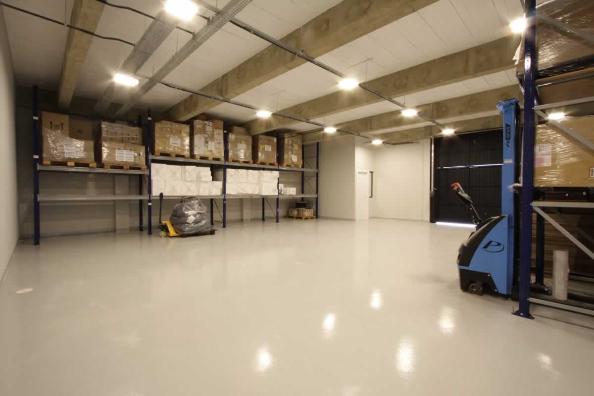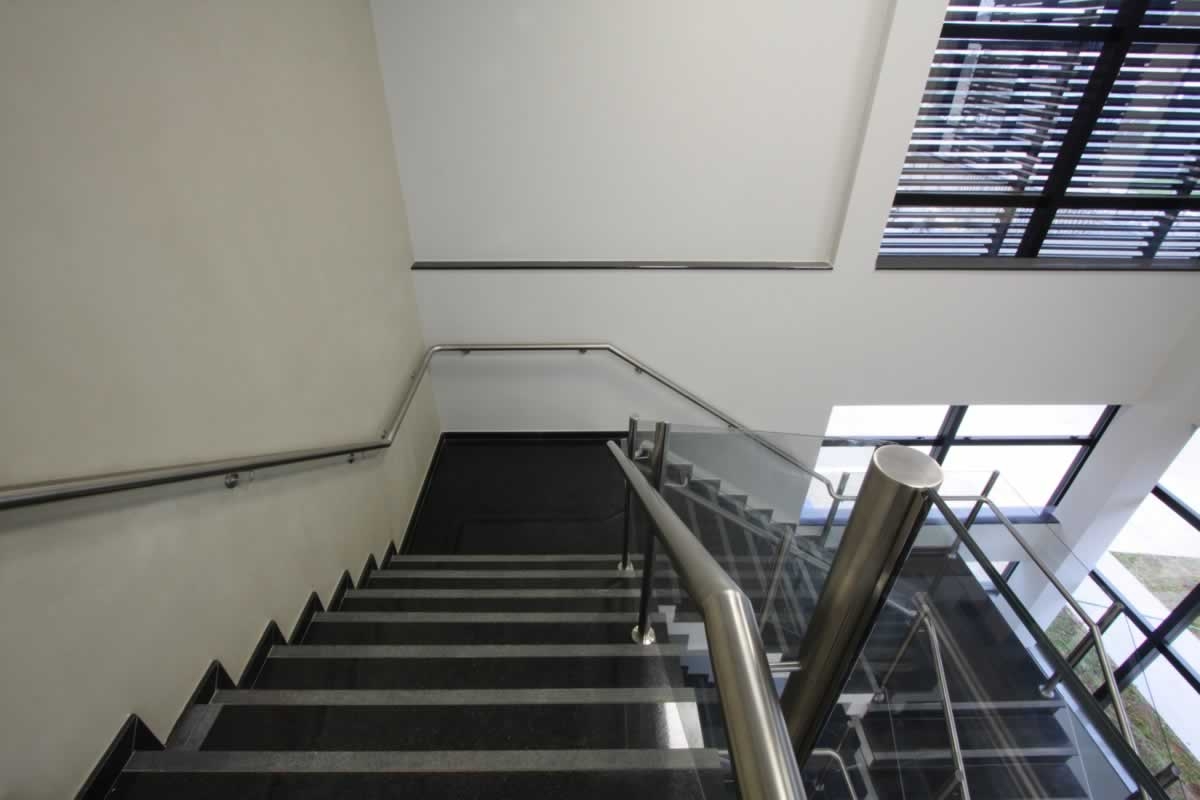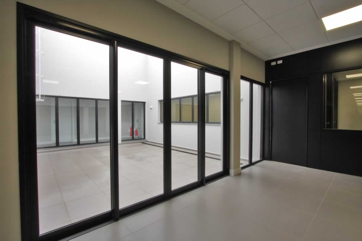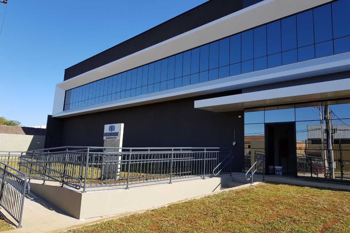 Escritório comercial executado em concreto armado, com acabamento moderno e adaptado a empresa de tecnologia.