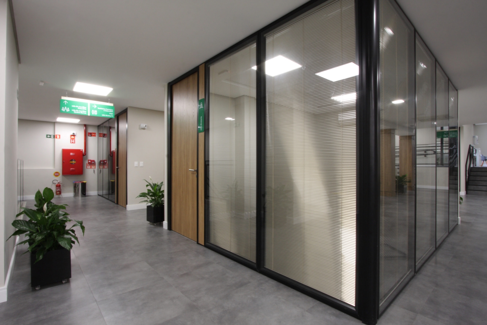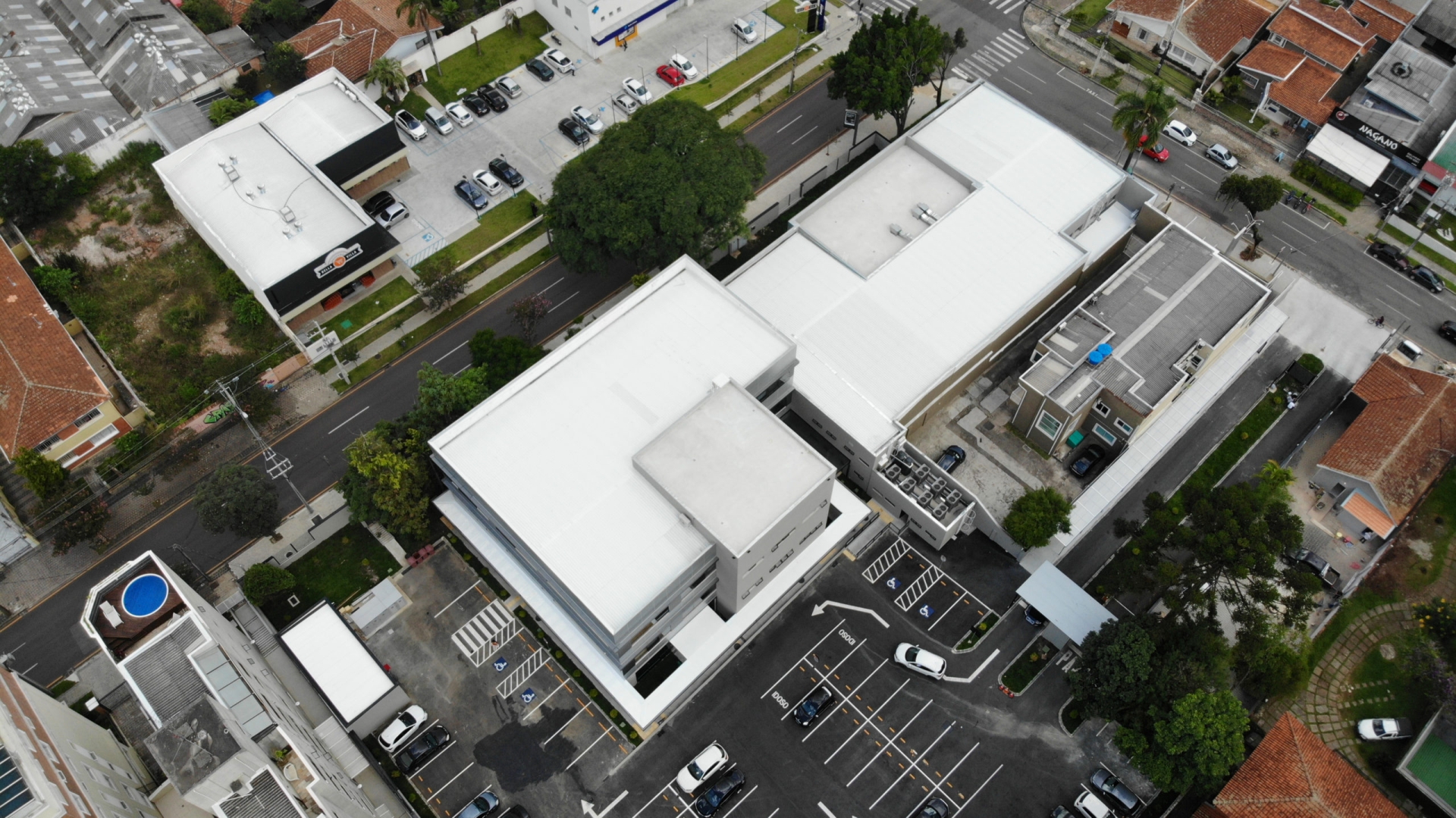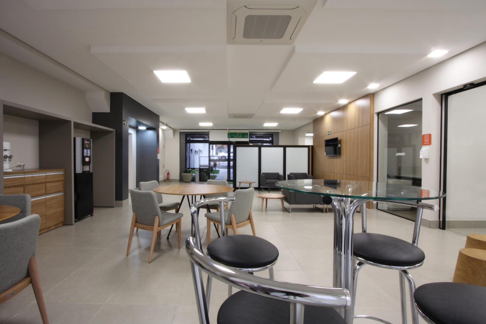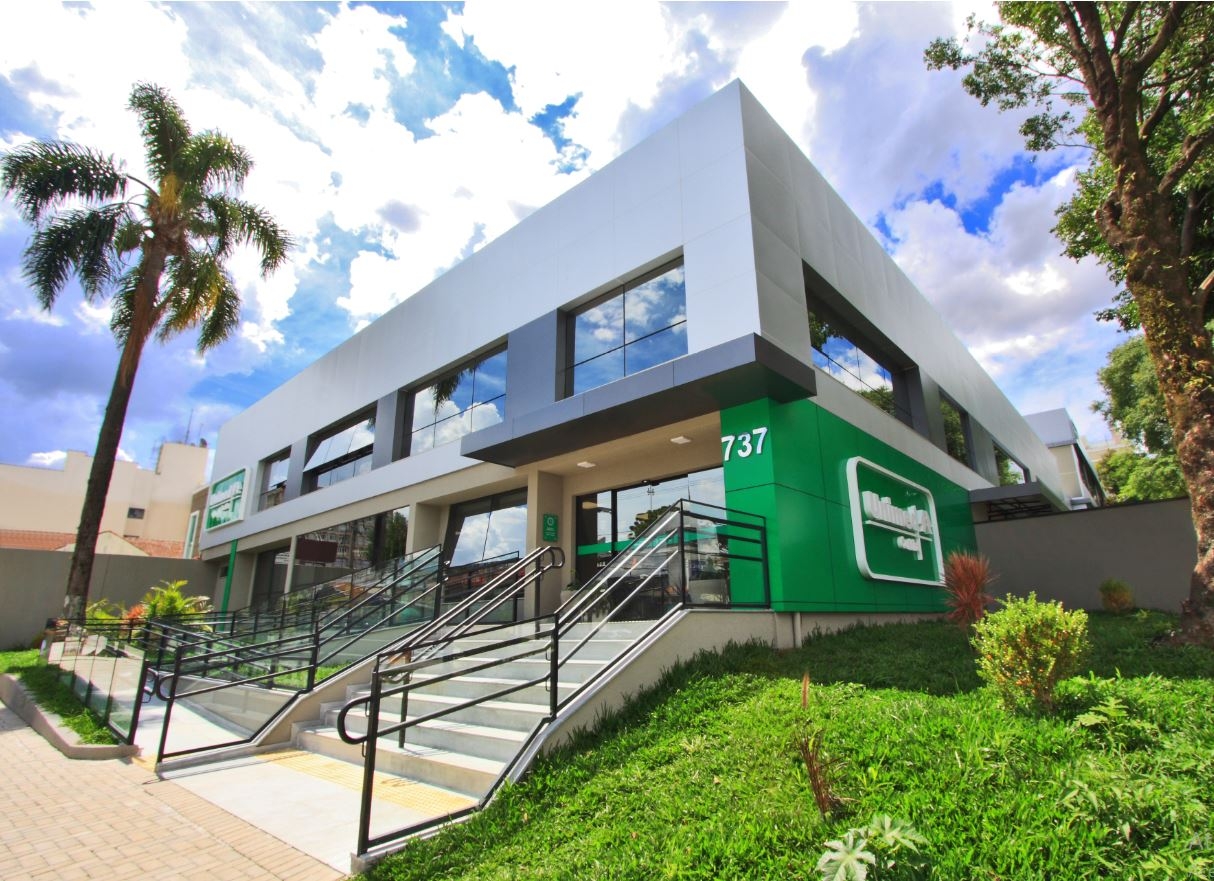 Edificação de uso administrativo com laboratório clínico. Obra que envolveu a reforma de um antigo prédio existente e uma ampliação de um novo prédio em estrutura pré-fabricada.