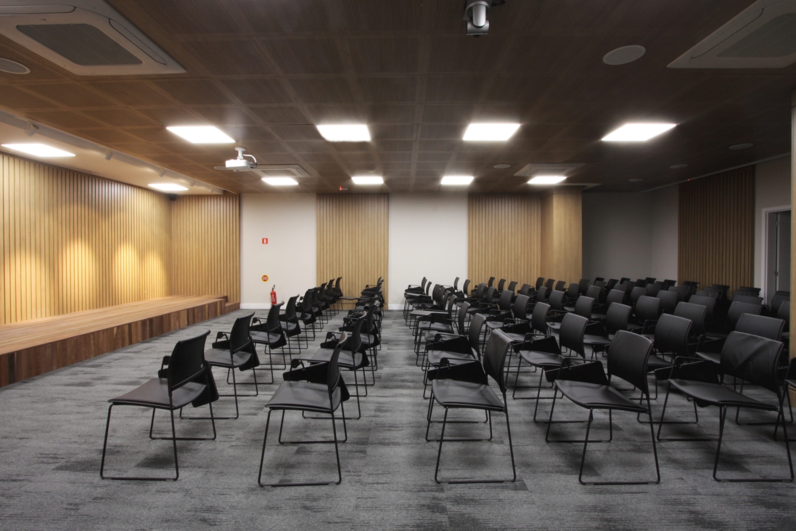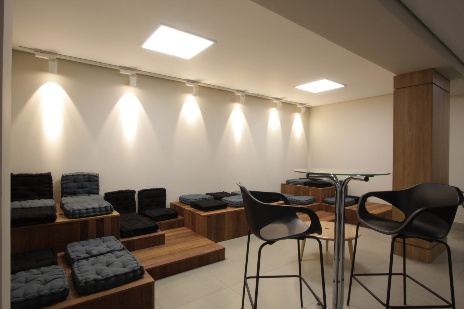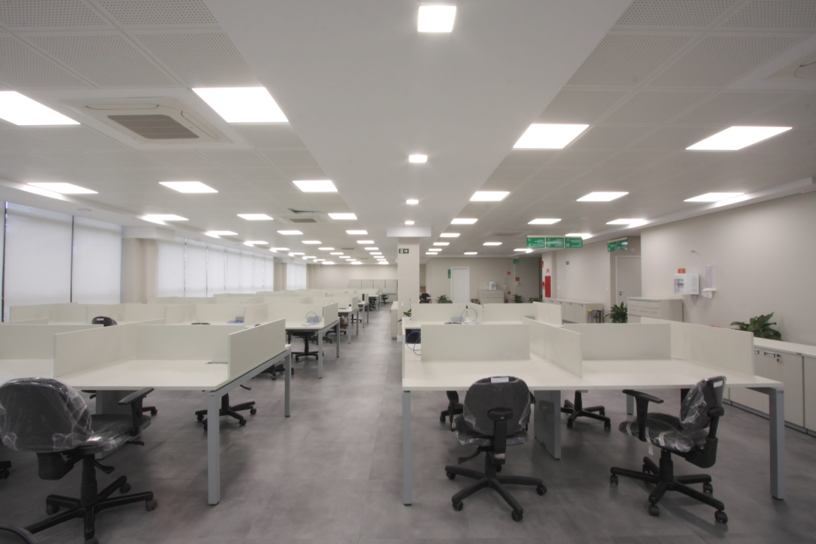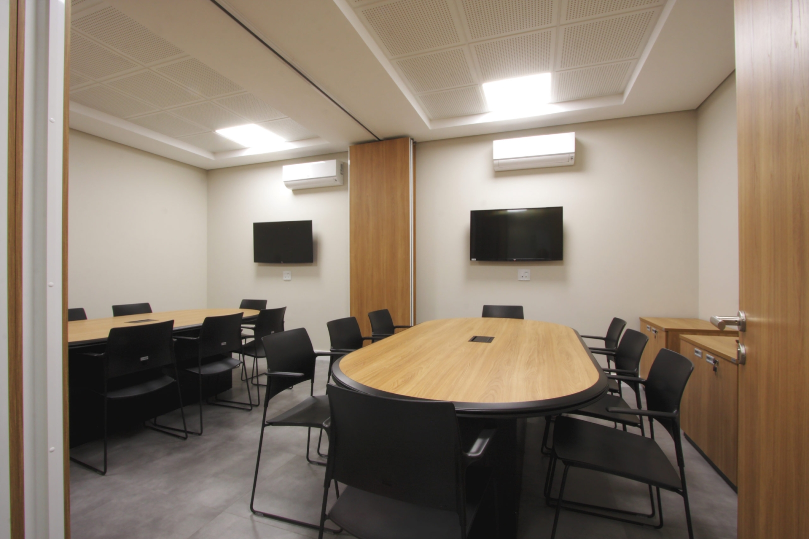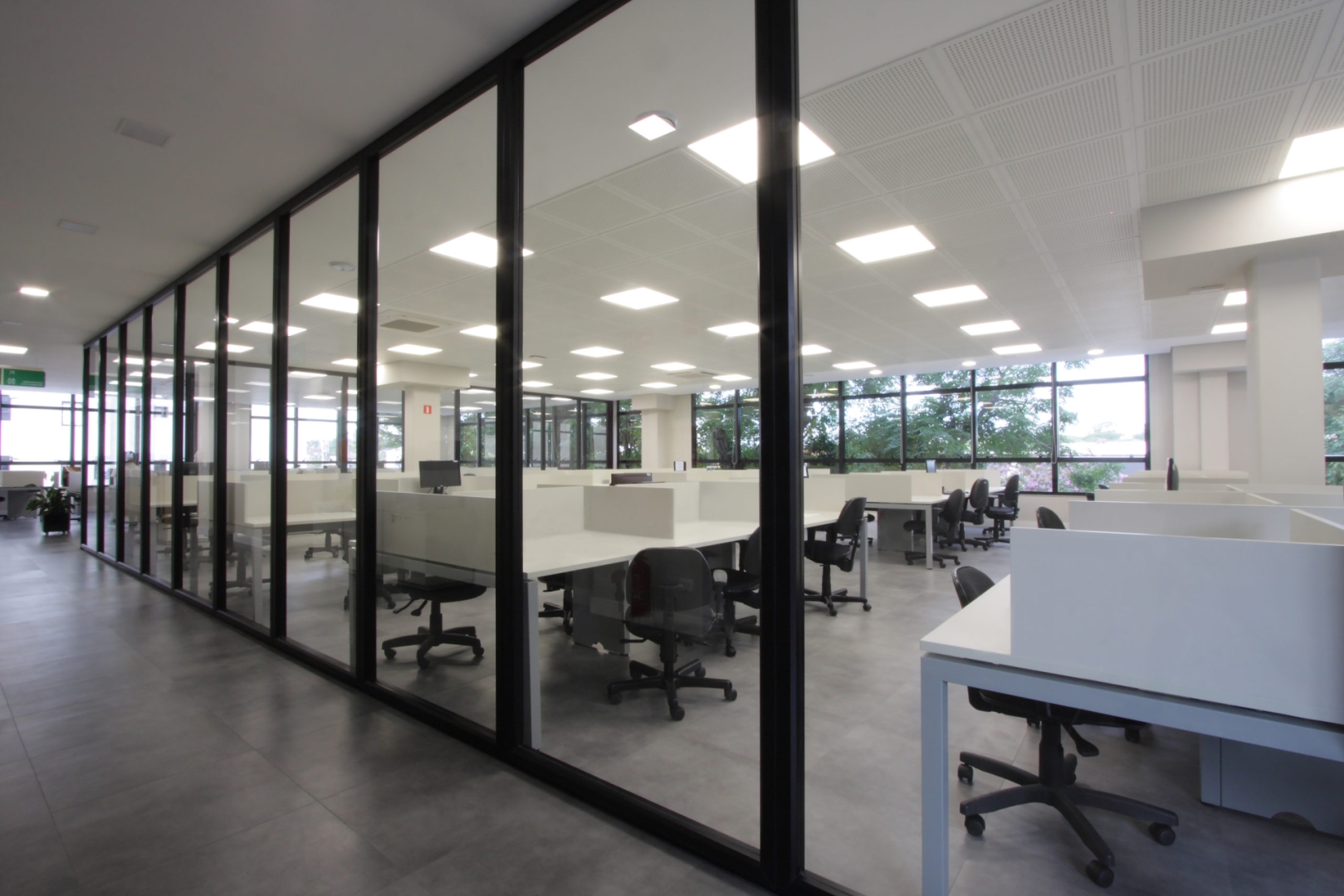 Edificação de uso administrativo com laboratório clínico. Obra que envolveu a reforma de um antigo prédio existente e uma ampliação de um novo prédio em estrutura pré-fabricada.